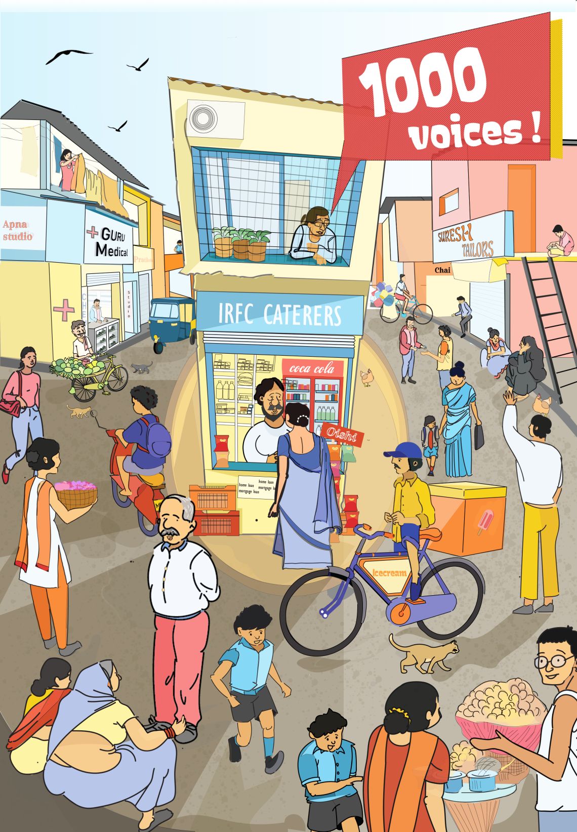 Dharavi has creativity and diversity deeply embedded into its landscape. It houses schools, hospitals, mosques, temples, pottery studios, craftsmen, leather industries, textile workshops, food production units, markets of all sorts, people from all over India and much more. This mix creates a unique urban settlement, facilitating interactions and arrangements just as unique. Dharavi combines spatial density with temporal intensity - if no one quite understands how so many people can be accommodated over the 590 acres of Dharavi, it is even harder to figure how people manage their time. Days seem long enough to juggle jobs, businesses, industries, social work, friendships, festivals, carnivals, commerce, community, families, children, drawn-out chai breaks. Our project, 1000 Voices, aims to understand this grand terrain through the perspective of people who, through their presence and activities, keep on reproducing it day after day.