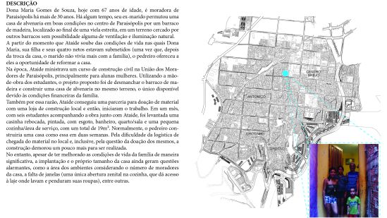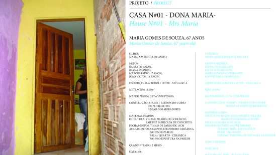 The book is a record book of 20 houses built by the mason Ataide Caetite in the Paraisopolis favela, focusing on the question of how sociability, the way of life and the economic and cultural dynamics are reflected in the built family space: the home. Through surveys of the houses built by Ataide and interviews with its residents, seeking to understand the history of his life within the community, the project aims to present a particular sociability inherent in to the “favela”, providing a proximity to this lifestyle and social reality. The family relationship, the feeling of belonging and a sense of community, strong social organization, the role of the street and the slab as a place for meeting and sharing collective experiences and the “make do” (doing the best with whatever resources are available) are features of a way of life within this profile of a place.