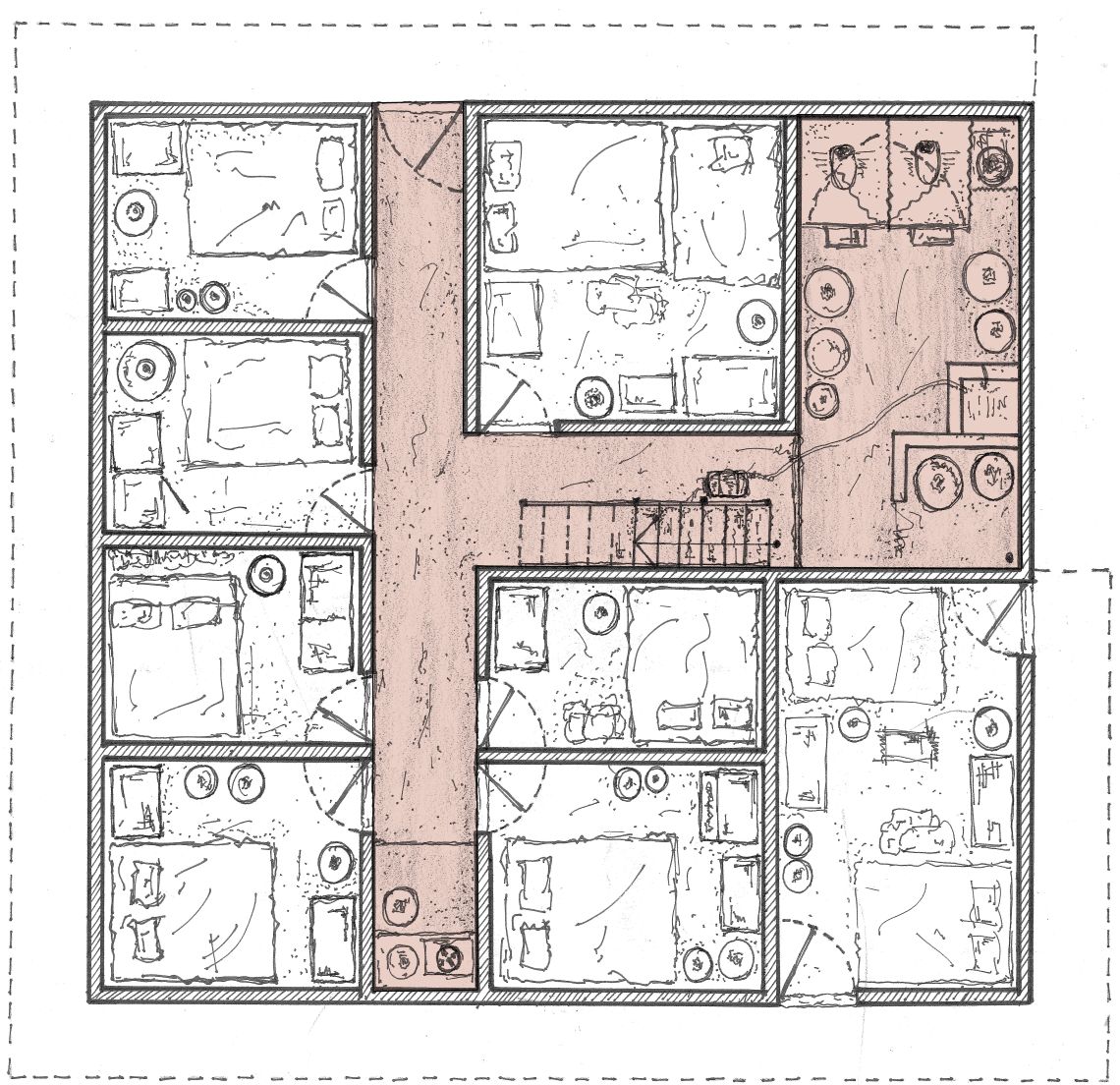The ground floor plan of Selim’s house, a multi-generational residence