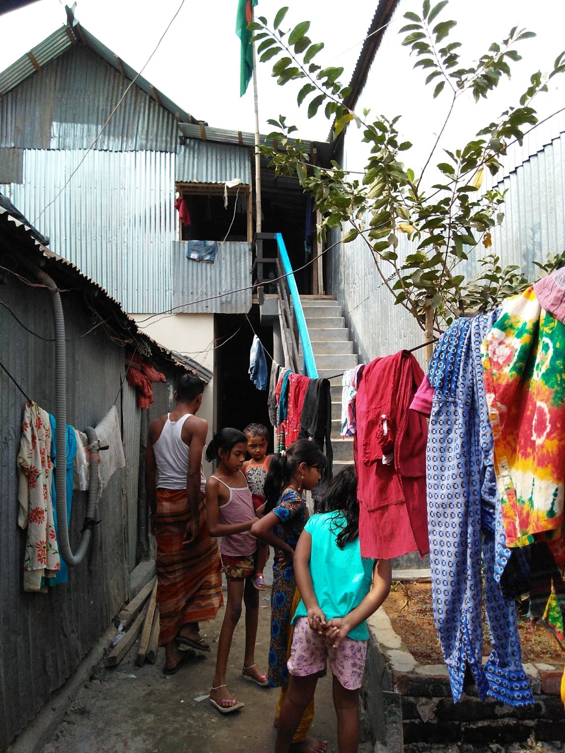 Although making and contributing to the whole basti, the residents remain true to their local origins: it’s common to see people belonging to specific districts live in the same area and build networks with one another. Despite this, different groups may share close-knit bonds owing to the ties between generations of families that have already lived there, and a shared sense of belonging to Karail basti. The inhabitants of bastis or self-organized settlements in Dhaka, also supported by NGOs, have learned to negotiate space and self-organize themselves to ensure basic infrastructures and their right to housing. Prominent residents are often involved in the allocation of unused and vacant land for newer inhabitants, as well as for the provision of utilities.