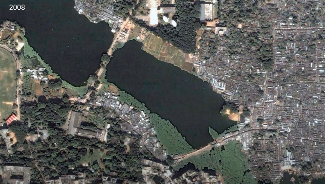 The increase in population and the threat of eviction drove the practice of landfilling in Karail. The portion of the lake within the settlement was filled up, while the site facing the Gulshan neighborhood had only minor expansions. The infill material is construction debris or waste collected by Karail residents who work in the construction industry. Over time the production of land is considerably more towards the north where the land preceded the buildings, in the south however the building was made on stilts and then the land was produced.