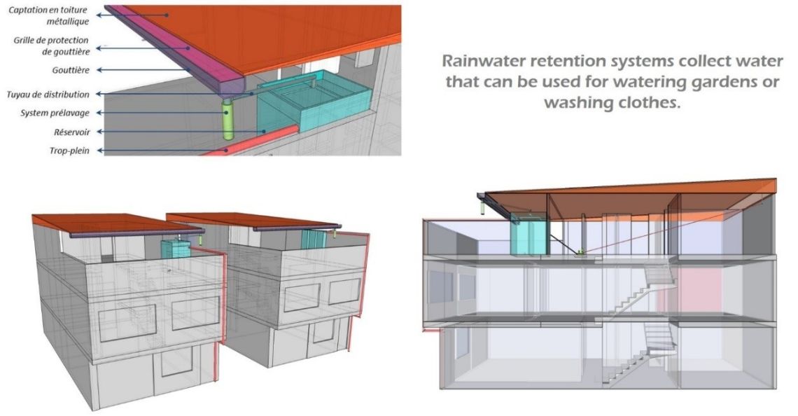After all this learning, from Bogota and also thanks to my travels to Mumbai, I proposed a system of rainwater harvesting, which uses modular tanks, and a water heating system, which takes advantage of the terraced area in the homes of Ciudad Bolivar.