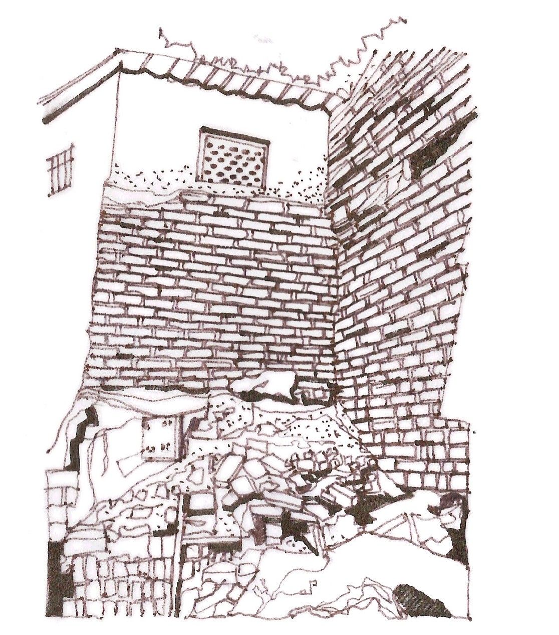 Construction was done in steel rather than RCC. This made it cheaper, less permanent, more incremental and flexible. In this particular locality, most constructions have shallow foundations of around 1.5 feet, which ensure that costs remain low and the foundations of the neighbouring houses are not disturbed. All of this makes the constructions legal as well as adaptable to specific requirements. But it also means that constructions are not quite as permanent or disaster resistant as they should be.