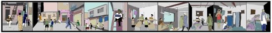 A small lane to the left from Dharavi depot road, towards Maharashtra Nature Park, opens up to a small open space with Muzaffar’s tool – house as a back drop. With children playing in the open area, and people using it for transition, it remains lively. An external ladder from the ground floor leads up to Muzaffar’s garment workshop which is a 225 sq. ft. area with 8 sewing machines and 7 workers, 3 to 4 of whom stay in the workshop at night for security purpose.