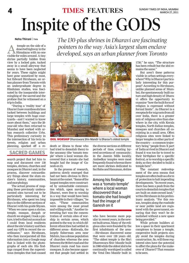 Times of India writes about the research initiated on the sacred space of Dharavi initiated by urbz.