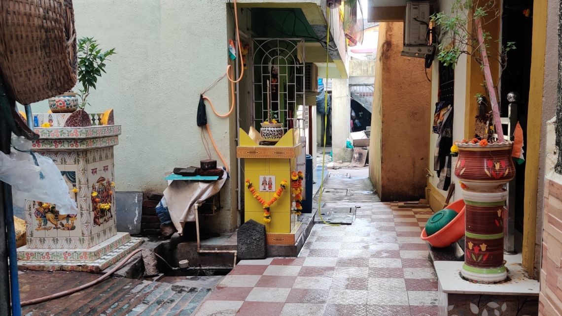 Indigenous patterns and the use of vivid colours by homeowners are also reminiscent of vernacular architecture since colourful homes and buildings appear unexpectedly in small streets. Most of the areas are occupied by family and relatives living in clusters with shared chowks where individuals have created Tulsi Vrindavan outside their dwellings. The doors are ornamented with hand-woven torans, and the rangoli patterns in the chowks, and a clothesline and fishing baskets hung outside the houses. These are some of the characteristics that may be found in various residences across the community. Such incremental architecture fosters local identity and helps to placemaking and an emergence of a spirit of the place.