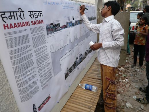 Haamari Sadak (Our Road) project: Aastha, Cole, Rahul and Matias brainstormed with the residents about the road and tried to figure out how it could be fixed and maintained by the residents. This project will continue all through the year with the support of KHOJ.