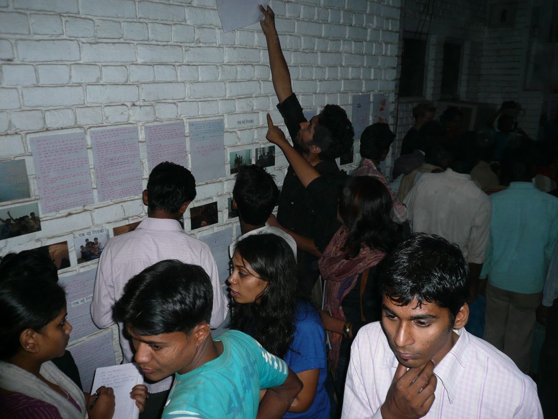 Voices of Khirkee: Lokesh Harsh, Julia, Paulami and Parul wrote and collected poems about Khirkee and shared them with everyone. On the same wall, Ridhima presented glimpses of discussions she had with the children of Khirkee about their neighbourhood.