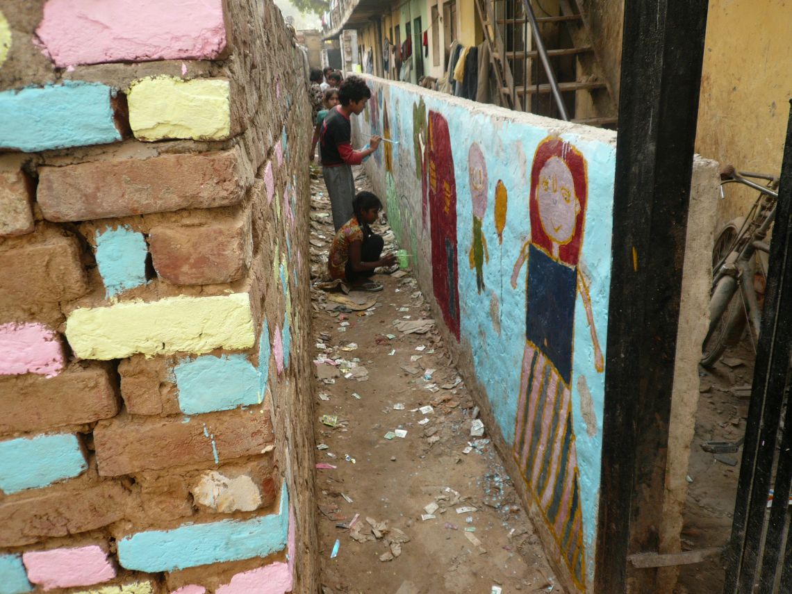 Doh Baje (2 O’Clock): Himanshu, Meg and Lauren worked with the kids and painted a wall amongst many other activities. Himanshu is still there now continuing the work with the kids.