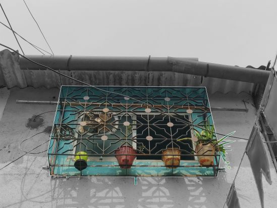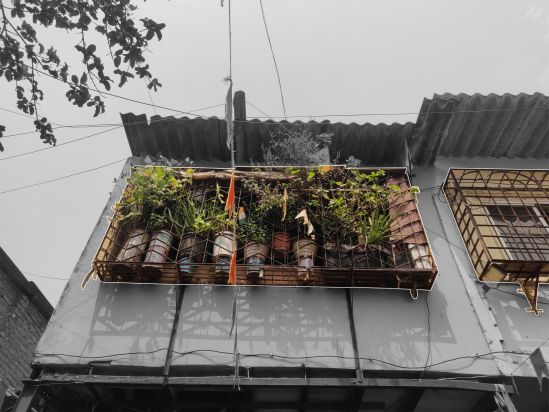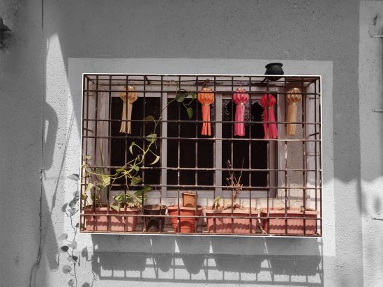 Serving as a low-cost and sturdy solution for securing window openings, window grilles have reshaped Mumbai's urban aesthetic. Over time, the convenience of welding mild steel into durable frameworks has resonated throughout the city, especially in low rise-high density settlements. An array of mild steel window grilles dominate the street elevation of Dharavi. As one of the most essential Homegrown elements, these metal frames have become a natural part of the street catering efficiently to the spatial requirements of the community. Beyond the primary function of safety, they serve as extended storage areas in this context where a ‘little extra’ space is an asset. Beyond the internal square footage of the house, these attachments provide room for housing planters, storing water cans, drying clothes, seating spaces, fixing TV antennas, and placing advertisement banners.