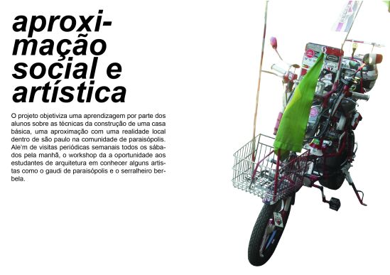 Muito mais que uma aula convencional sobre as técnicas da construção civil, este workshop convida o aluno-arquiteto a aprender sobre a construção de casas com moradores locais e com suas necessidades locais. Dará entendimento prático da dinâmica de um pedaço de cidade que hoje virou bairro. Espaço este que gerou,sigue gerando e continuará gerando o que chamamos de cidade. Não podemos mais negar este tipo de forma urbana e construção dentro da cidade de SP.