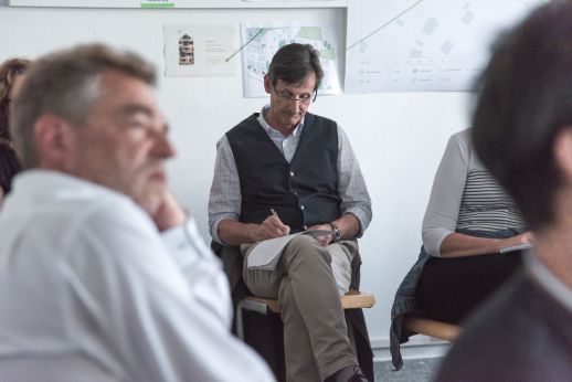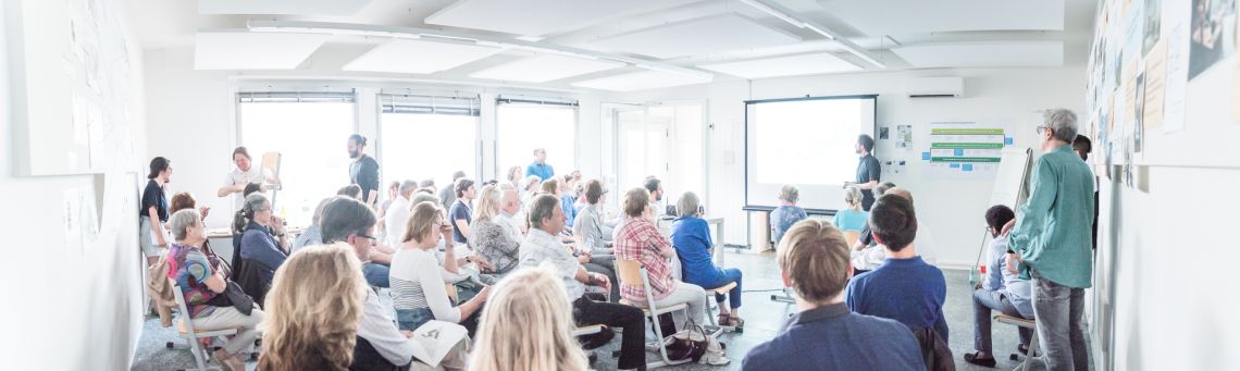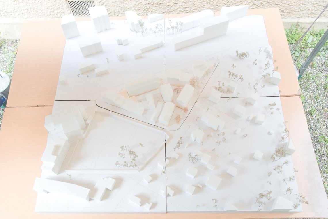 Le 19 décembre 2017 nous avons présenté et validé les grandes orientations et les principes du projet lors d’une séance publique à la salle communale Lachenal. Suite à cela, en janvier, nous avons invité des architectes pendant deux jours dans la Maison du Projet (située sur le site) pour initier une réflexion sur la forme du futur quartier. La plupart de ces invités font partie du réseau urbz et nous avons souvent eu l’occasion de travailler avec eux auparavant. Presque tous étaient déjà présents au workshop de lancement (13-15 octobre 2017). Le workshop professionnel de janvier avec 15 participants invités a généré une grande quantité d'idées et de variantes pour la forme du nouveau quartier. Le deuxième soir, une des variantes remplissant tous les critères et paraissant prometteuse a été sélectionnée par le groupe. C’est cette variante que nous avons étudié et fait évoluer entre mars et juin 2017.