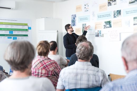 Le 11 juin 2018, urbz présente ses travaux sur la forme du futur quartier Lachenal-Dégallier (dit Delta V) aux habitants de Versoix. Un résumé en texte et image.