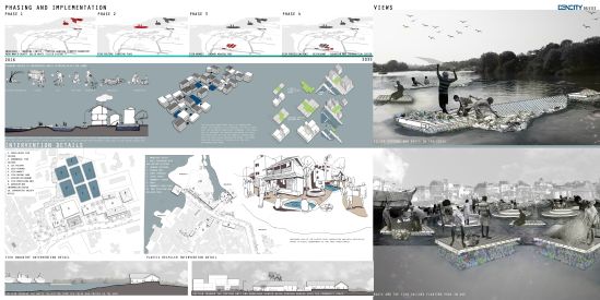 The proposed four-phased intervention encompasses a number of critical questions and tackles two major issues: integration and sustainable development. The intervention intends to blur the existing social boundary between the kolis and the city dwellers, and effectuate an integration across various levels: social, economic, spatial and political. This proposal wishes to address the issue of an ‘unseen future’ of these communities by exploring different methods that can sustain their existence and propel it forward in an exemplary environment-friendly manner.
