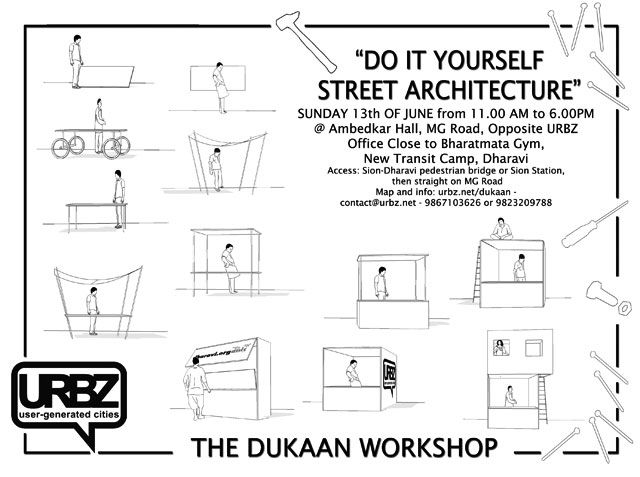 On Sunday June 13, URBZ organizes the Dukaan Workshop. Students, Architects, Engineers, Craftsmen, Handymen, will come together to build an evolutionary, flexible and light dukaan orstreetshop, which can support an economic activity and be incrementally developed.