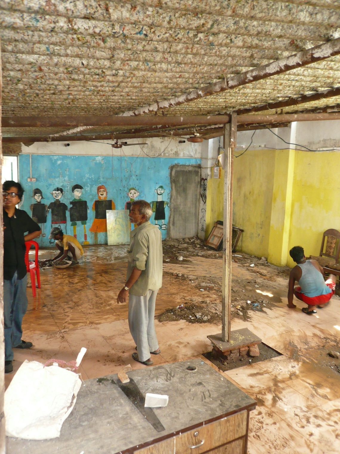 Yesterday we just replaced the old roof of the Dharavi Shelter, which was made with cement sheets (which contains asbestos and is widely used all over India) with Poly Al sheet a new material made of recycled Tetra Pak bricks.