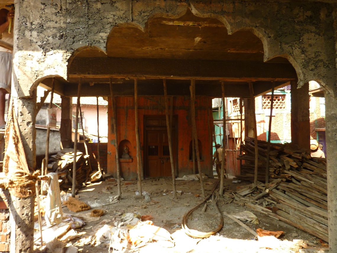 Dharavi is a neighbourhood constantly undergoing improvement and renovation, a characteristic that applies to its religious sites as well. Most larger temples in the area began as small shrines. When enough money was raised and space found, a new structure got built and the idol moved. This process is ongoing. It is common to find that the ’society’ associated with a shrine has a plan to construct a bigger structure if the interest and capital can be found. In recent years, there has been a push from the courts to demolish temples that are built on state-owned land. For this reason, temples along the roadside or near public land are registered with the government, ensuring that they wont be demolished without a new space being provided. When private builders develop apartment complexes in Dharavi it is common for the local religious ’society’ to be given free space in the new construction to house a temple. Cooperative built projects tend to simply avoid the temples during construction rather than demolish them and award new space.