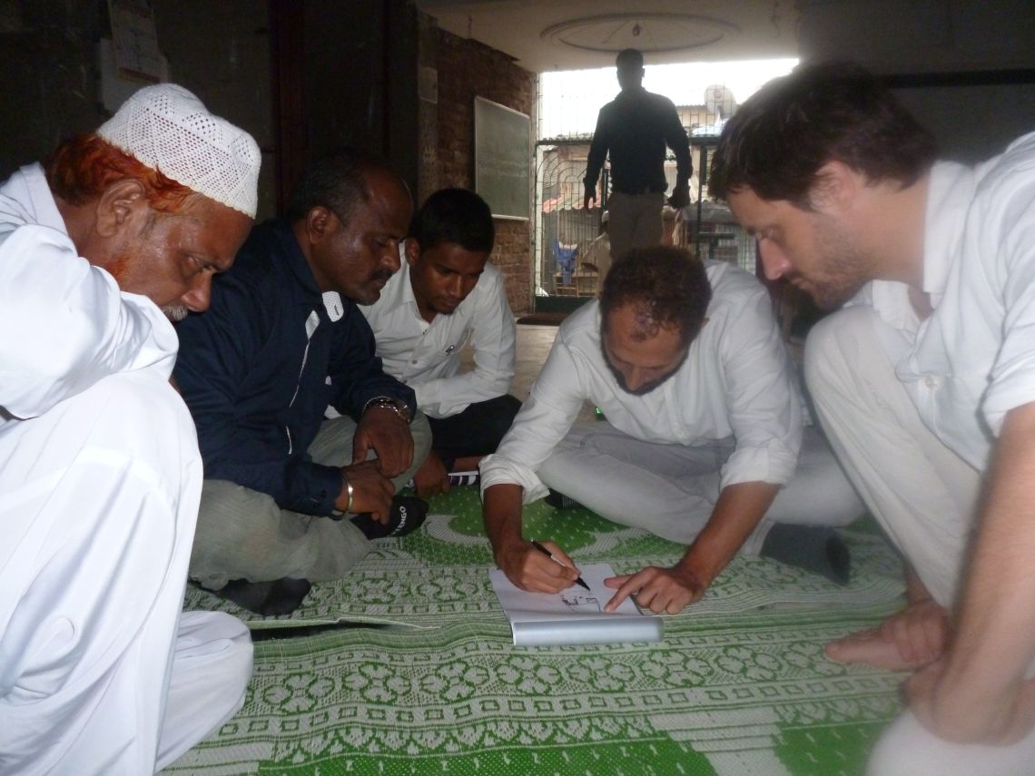 Once the discussions helped fine-tune the designs, these were presented back to the mosque committee. Subsequent to the approval discussions moved to the actual execution of the structure. The complex process of working with drawings and developing paper work started. The team is joined by a local civil engineer who helped, to understand the actual site conditions like soil stability, load-bearing abilities of the structure, as well as issues of management of the structure on site.