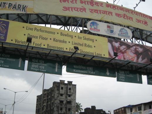 Mira Road also has its emerging ghettos in older buildings planted along dirt roads. What we observe there is the presence of minorities that have found refuge at the edge of this suburb which is really on the edge of Mumbai. Another population that has found refuge in Mira Road are dance bars. As has happened in many other cities, including New York’s Time Square which was “cleaned-up”, when dance bars shut down in town they simply moved to the suburbs, out of sight but not out of reach. A recent raid by the Mumbai police resulted in the arrest of 109 bar girls, who were, according to the police, operating from secret chambers in various bars (source: urbanruminations 10.01.10).