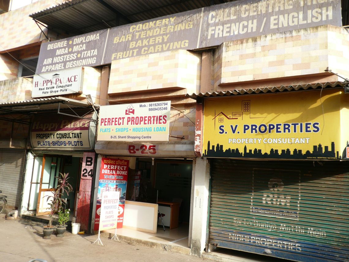 Real-estate is by far the main economic force at work in Mira Road. Many small real estate agencies can be seen around the station, along with insurers and accountants. The transactions are notoriously corrupt with real-estate agents and developers asking for a share of the money to be given in black (source: HT 21.05.06).