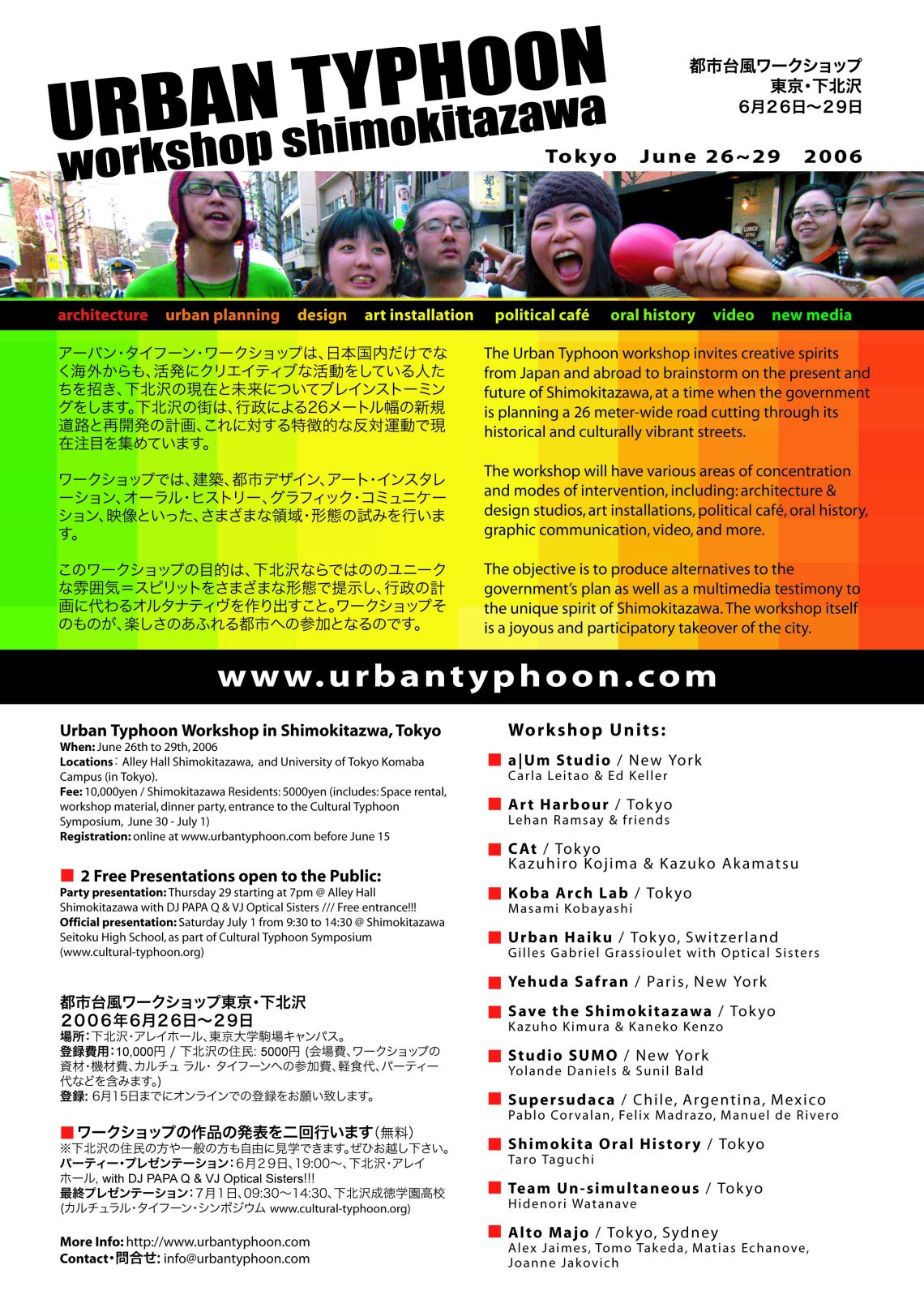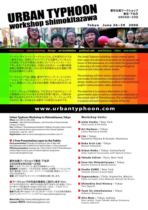 The Urban Typhoon can only happen when the practitioners are invited by residents or groups active in a neighbourhood. They are usually connected to a cause or issue that the residents are trying to solve. In Shimokitazawa (Tokyo) and Dharavi’s Koliwada (Mumbai), the residents where opposing a redevelopment project by the authorities which would have reduced the residents autonomy and threatened the identity of the neighbourhood.