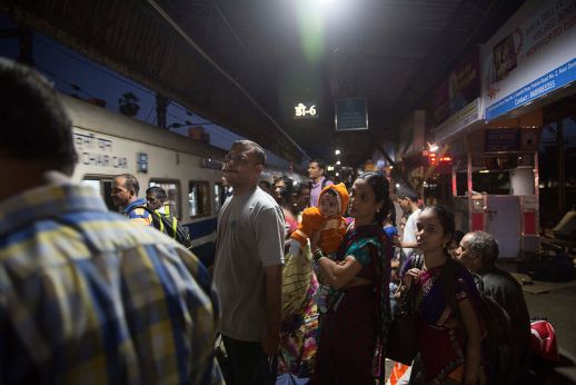 The Kule family on its way from Mumbai to their village near Chiplun in the Konkan, 250 km away - and a 4 to 5 hours journey. A single ticket costs about INR 250 (USD $3 to $4). Photo by Ishan Tankha for urbz.