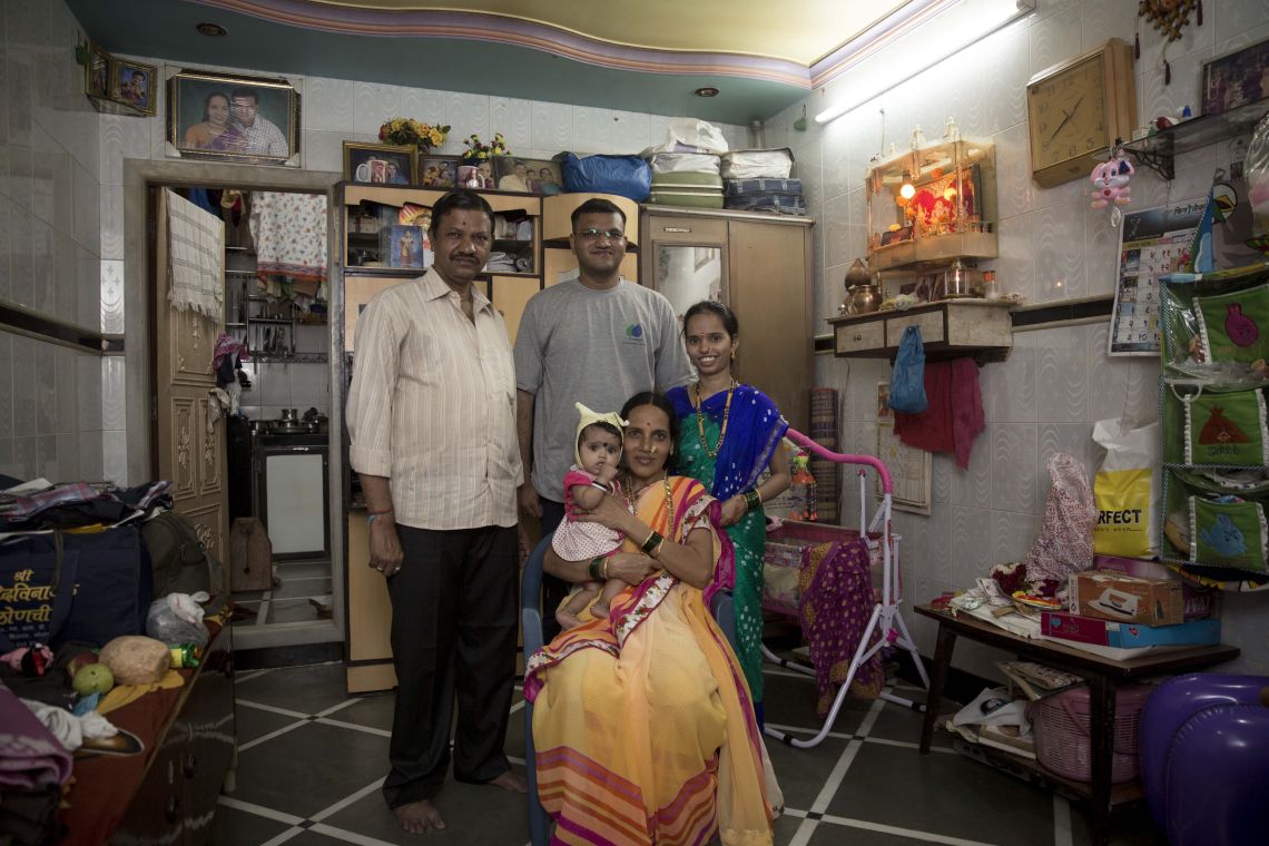 Ramdas, Laxmi, and their son Deepak, his wife Dhruva and grandaughter Sara in their family home in Bhandup, Mumbai.